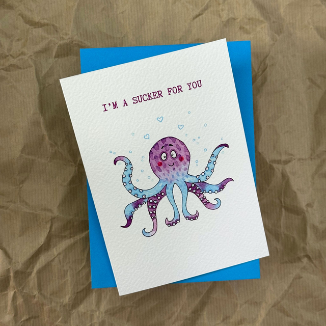 Celebrate your anniversary or Valentine's Day with our adorable octopus-themed greeting card!
