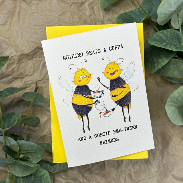 Nothing beats a cuppa and a gossip bee-tween friends - Greetings Card